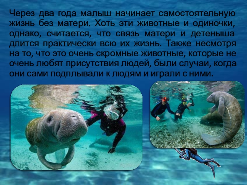 Слайд 10Морские коровы – одиночки по своей натуре. Однако, в случае угрозы