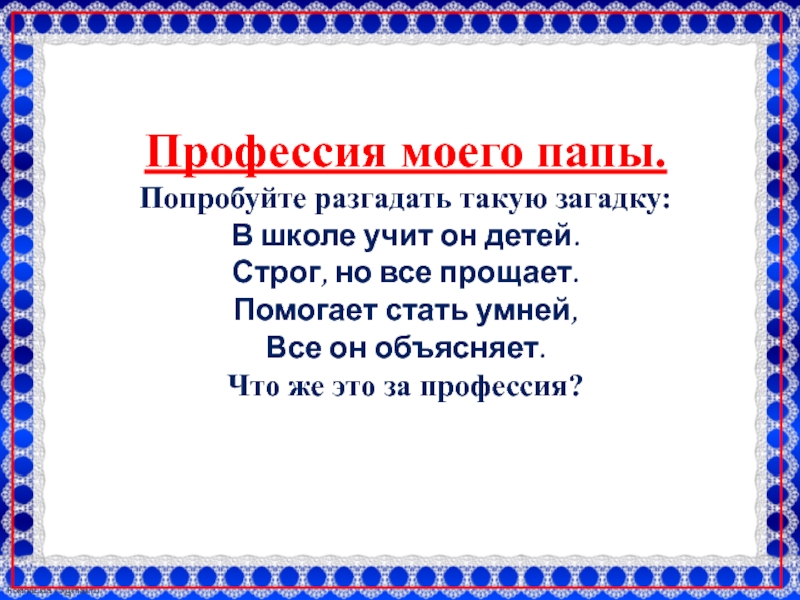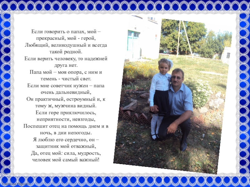 Слайд 10Если говорить о папах, мой – прекрасный, мой - герой,