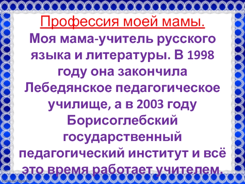 Моя мама-учитель русского языка и литературы. В 1998 году