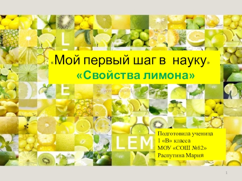 «Мой первый шаг в науку» «Свойства лимона»Подготовила ученица 1 «В» класса МОУ «СОШ №82»Распутина Мария