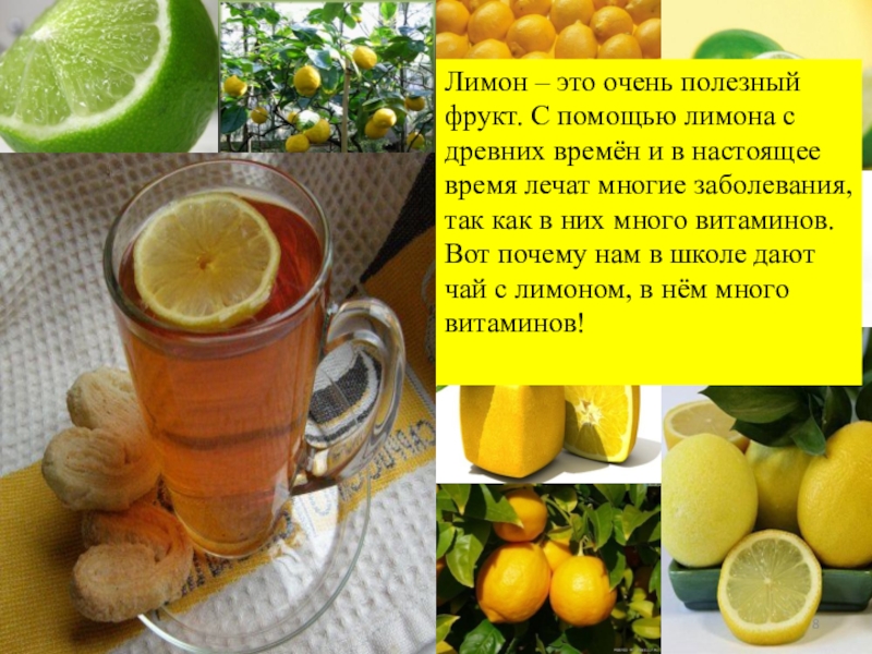 Слайд 8Лимон – это очень полезный фрукт. С помощью лимона с древних