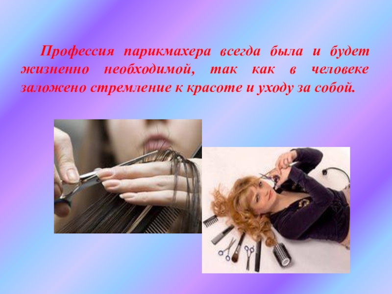 Слайд 8 Профессия парикмахера всегда была и будет жизненно необходимой, так как в