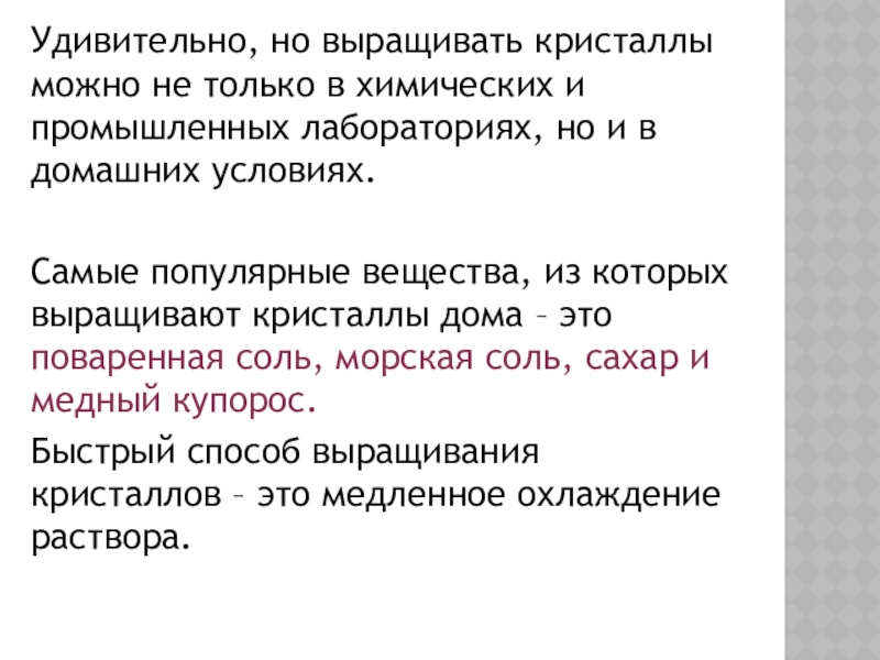 Слайд 10Удивительно, но выращивать кристаллы можно не только в химических и промышленных