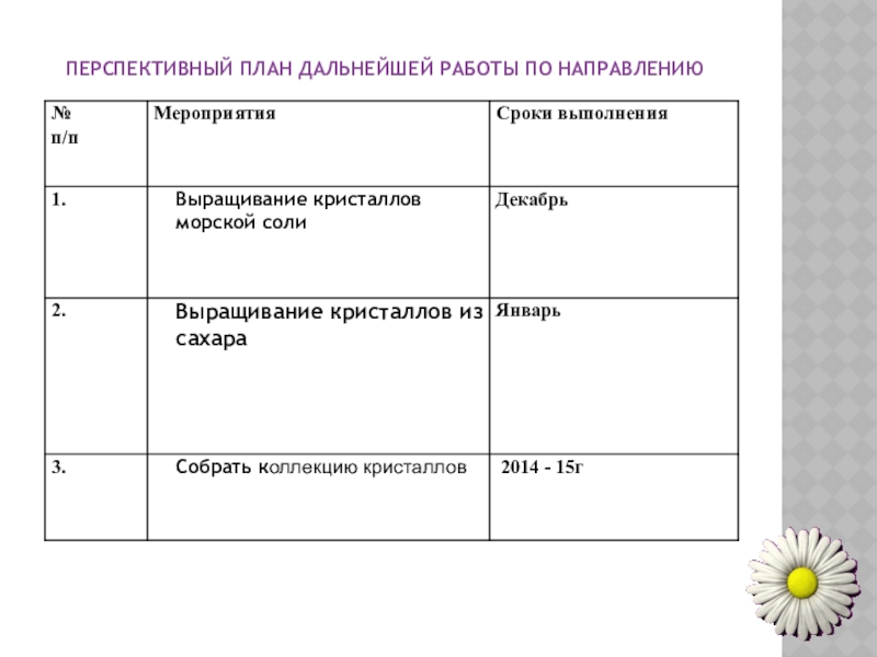 проекта состоит в составлении презентации с фотографиями выращенных кристаллов, в