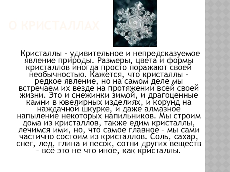 Слайд 2О КРИСТАЛЛАХ