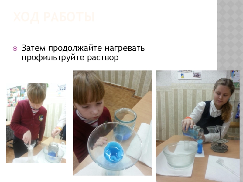 Затем продолжайте нагревать профильтруйте раствор