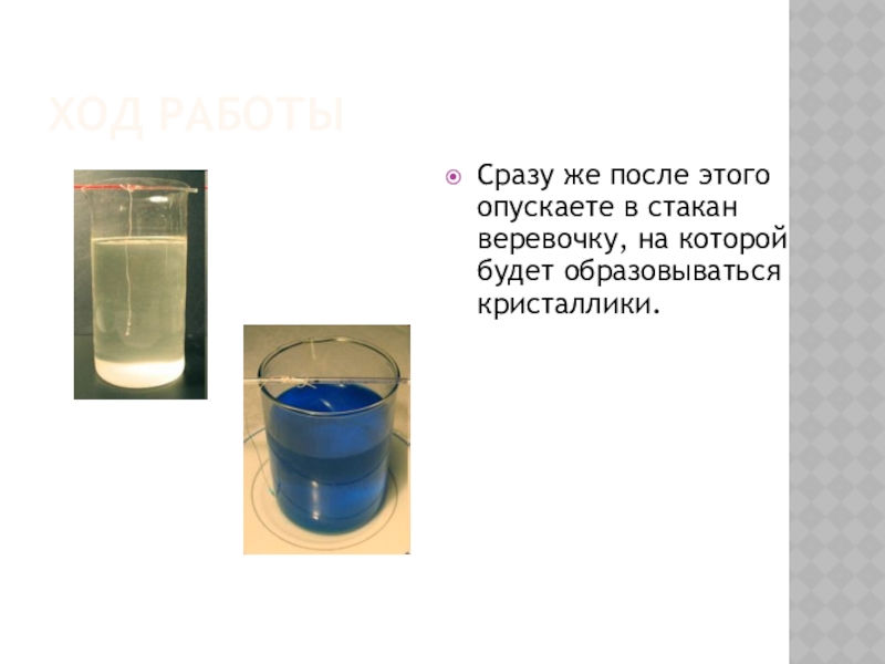Сразу же после этого опускаете в стакан веревочку, на которой