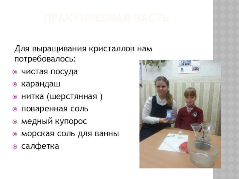 Для выращивания кристаллов нам потребовалось: