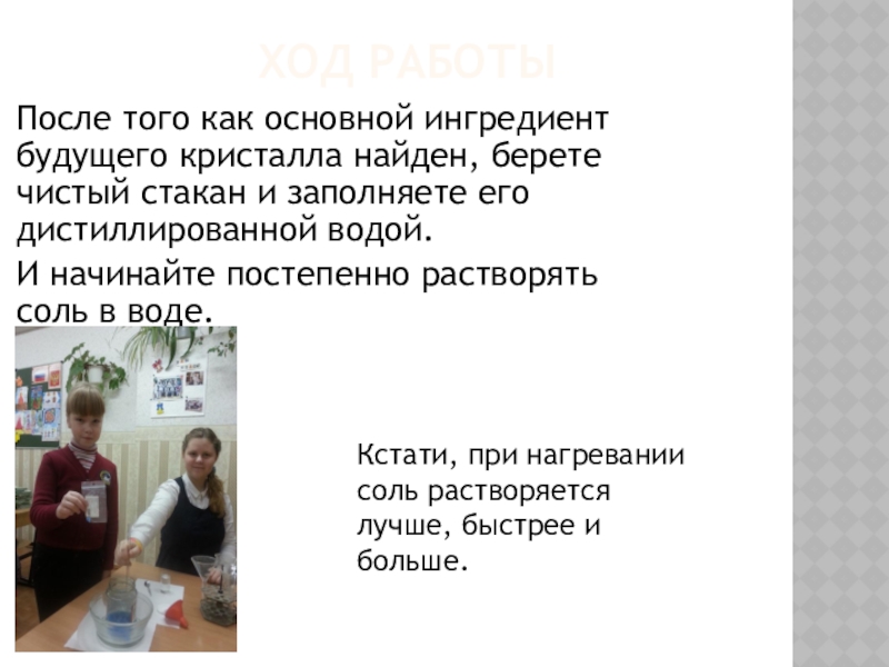 Слайд 25ВЫРАЩИВАНИЕ КРИСТАЛЛОВ ИЗ ПОВАРЕННОЙ СОЛИ