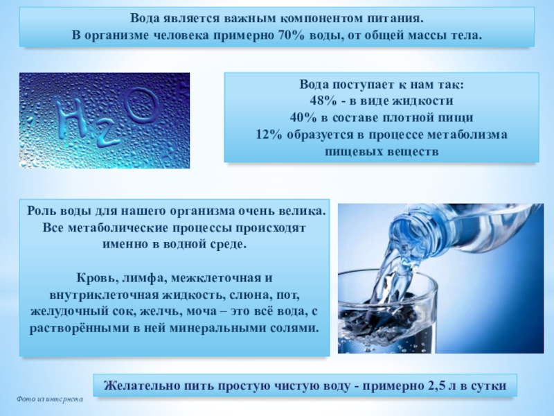 Вода является важным компонентом питания.