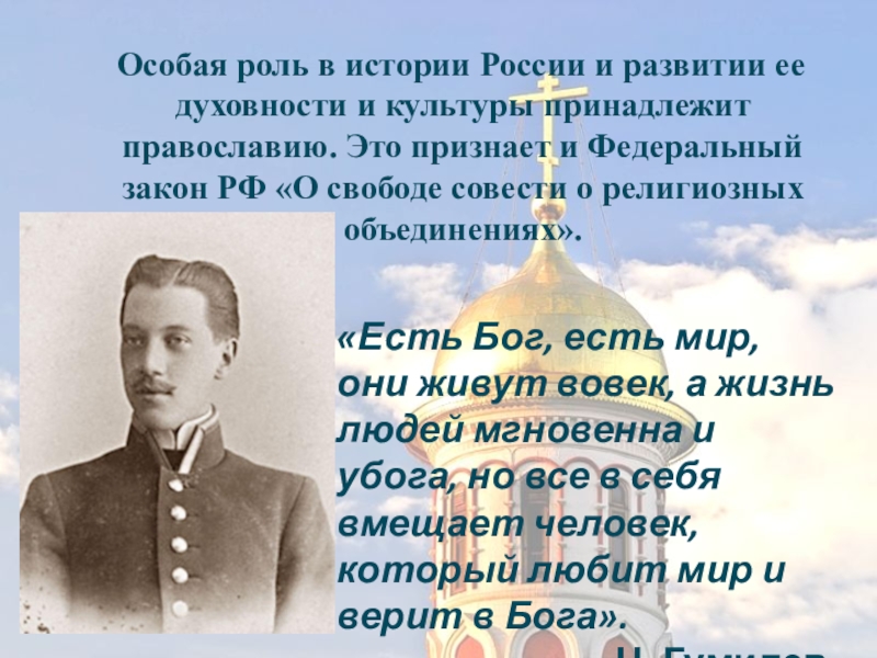 «Есть Бог, есть мир, они живут вовек, а жизнь людей мгновенна и убога, но все в себя вмещает человек, который любит мир и верит в Бога».