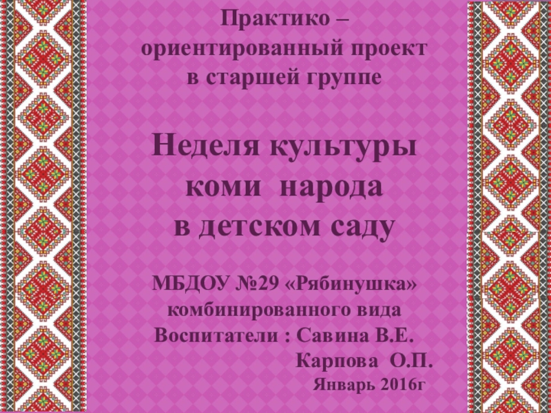 Воспитатели : Савина В.Е.