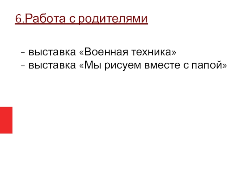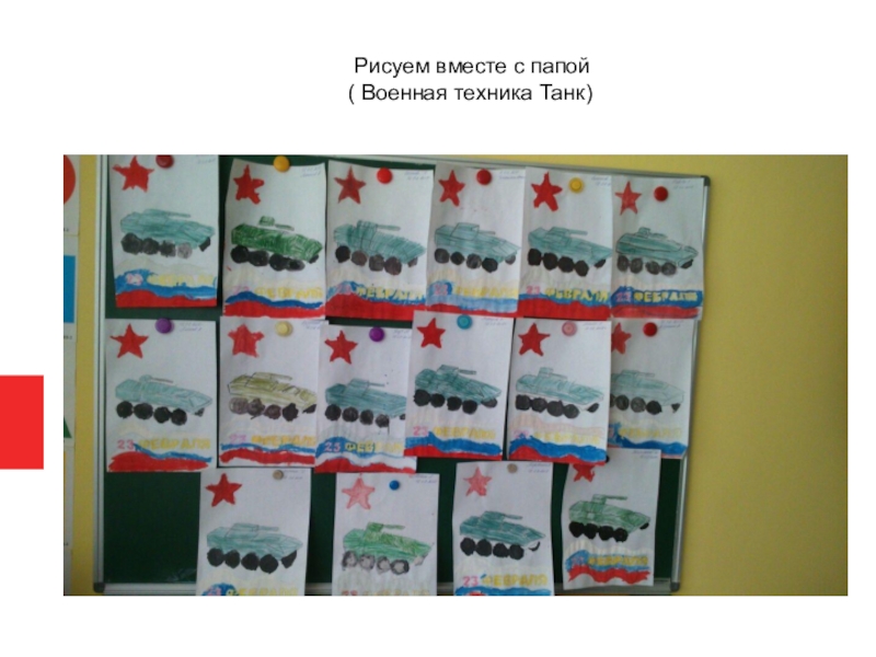 6.Работа с родителями - выставка «Военная техника» - выставка «Мы рисуем вместе с папой»