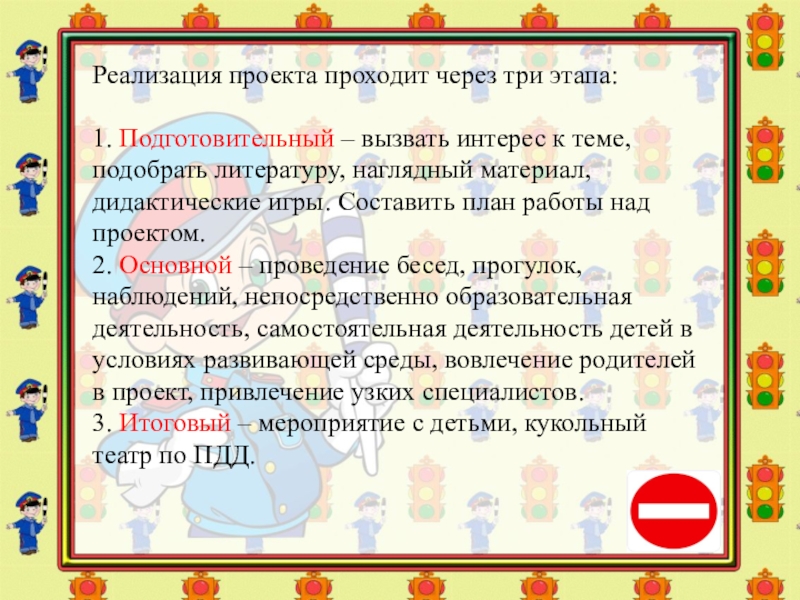 3. Итоговый – мероприятие с детьми, кукольный театр по ПДД.