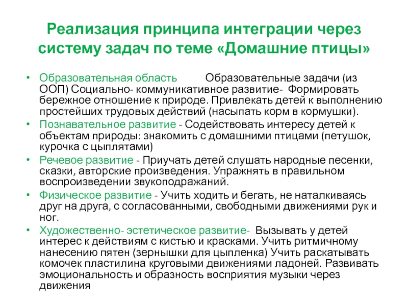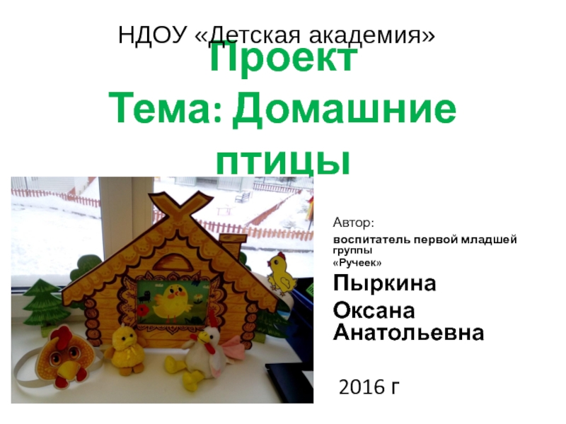Мы назвали много домашних птиц: курица, петух, утка, гусь, цыпленок.