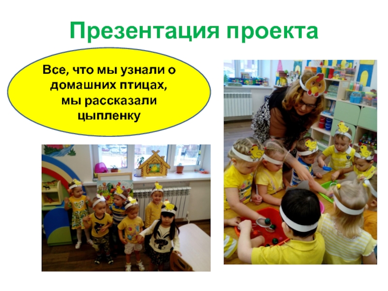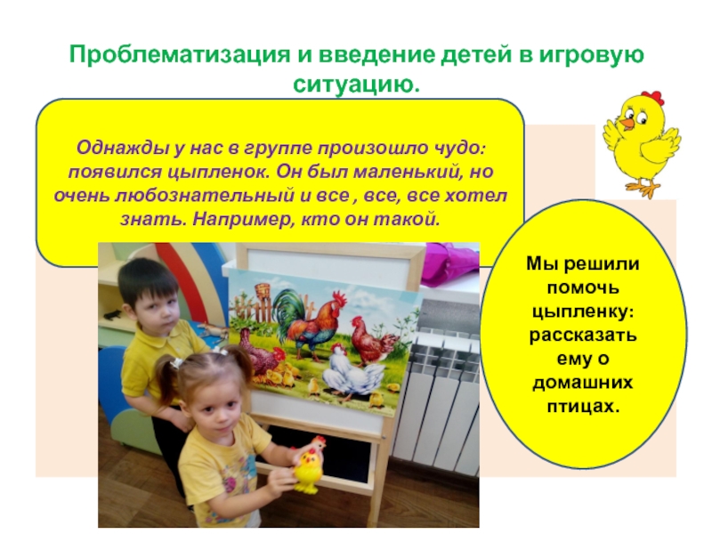 Мы решили помочь цыпленку: рассказать ему о домашних птицах.