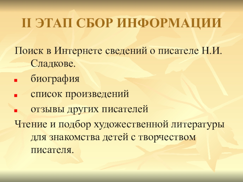 Поиск в Интернете сведений о писателе Н.И.Сладкове.