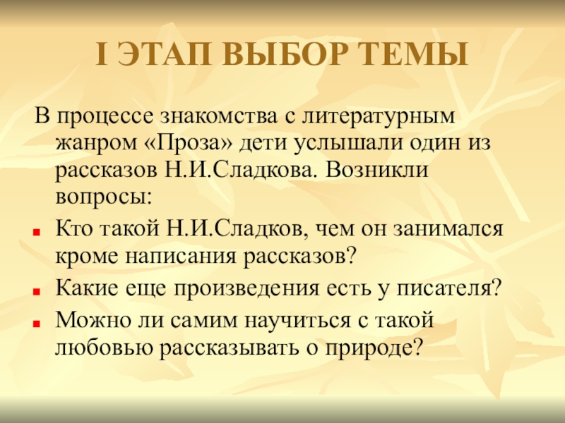 Слайд 4I ЭТАП ВЫБОР ТЕМЫ