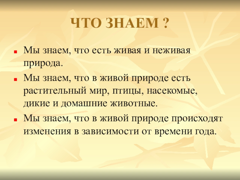 Мы знаем, что в живой природе происходят изменения в зависимости от времени года.