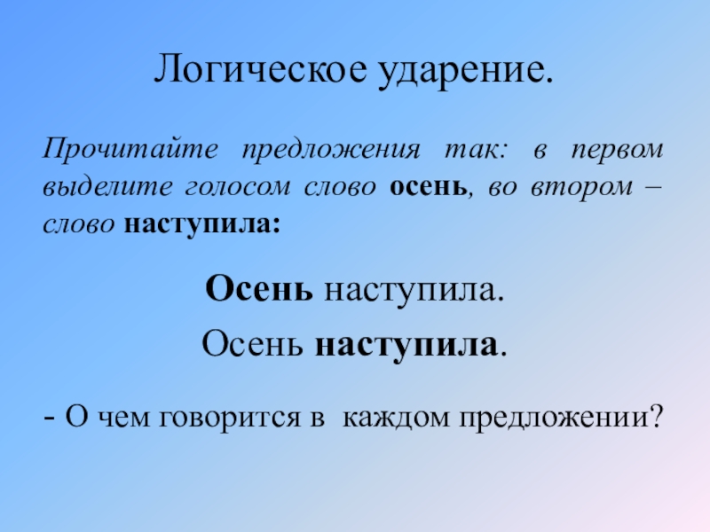 Прочитайте предложения так: в первом выделите голосом слово осень,