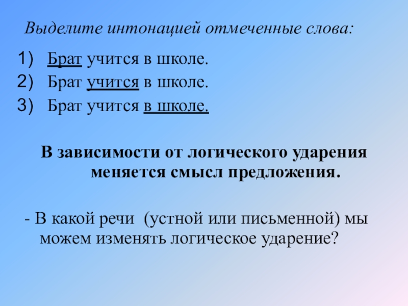 - В какой речи (устной или письменной) мы можем изменять логическое ударение?