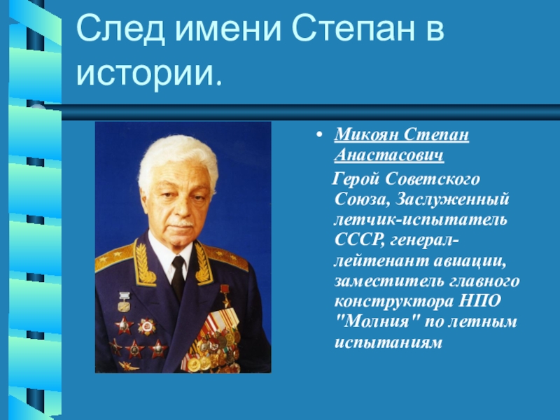 Союза, Заслуженный летчик-испытатель СССР, генерал-лейтенант авиации, заместитель главного конструктора НПО "Молния" по летным испытаниям
