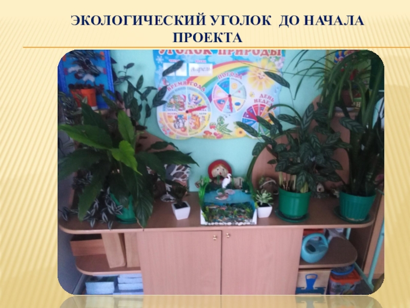 Слайд 15 Экологический уголок до начала проекта