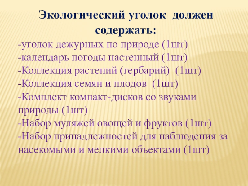 Слайд 9Экологический уголок должен содержать:
