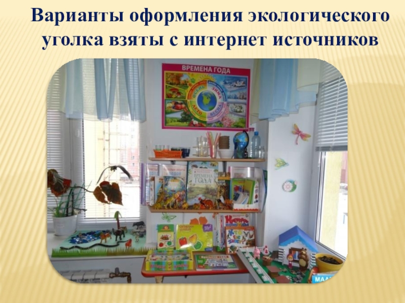 Слайд 11Варианты оформления экологического уголка взяты с интернет источников