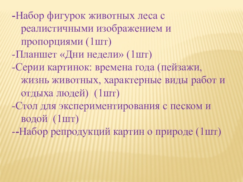 обучения, материалы, игровое оборудование.