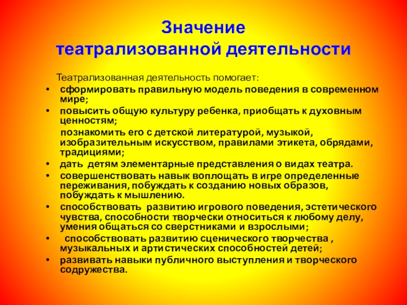 Театрализованная деятельность помогает ребенку преодолеть робость, неуверенность в себе, застенчивость.