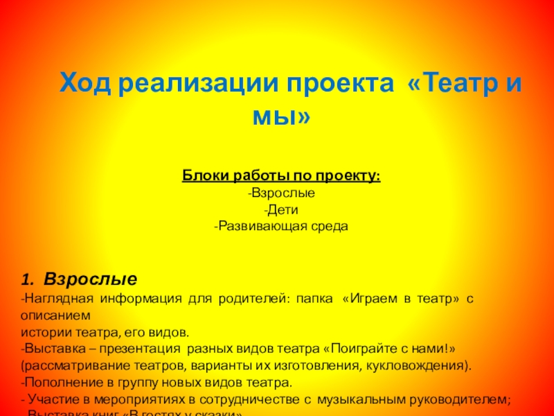 Слайд 18 Ход реализации проекта «Театр и мы»