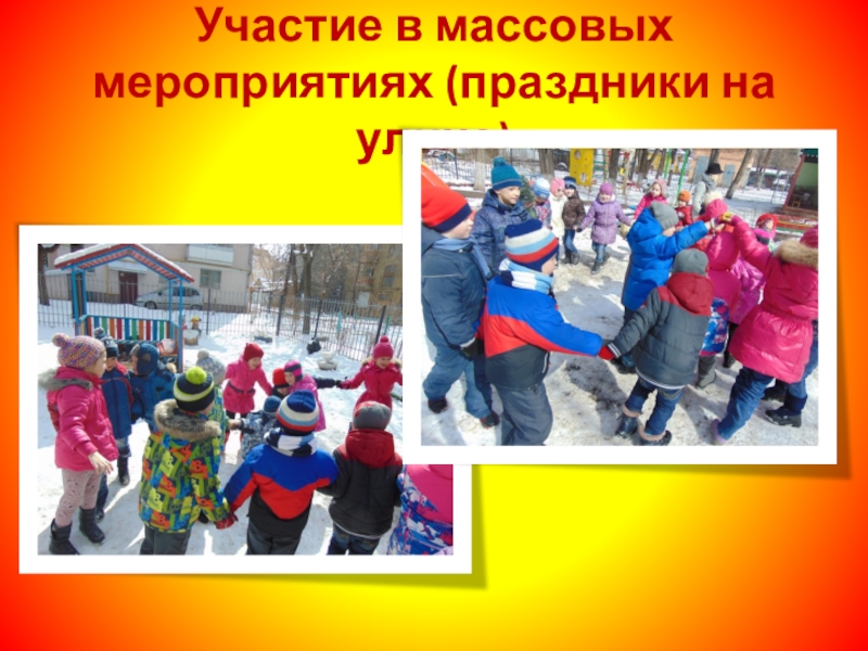 Слайд 27Участие в массовых мероприятиях (праздники на улице)