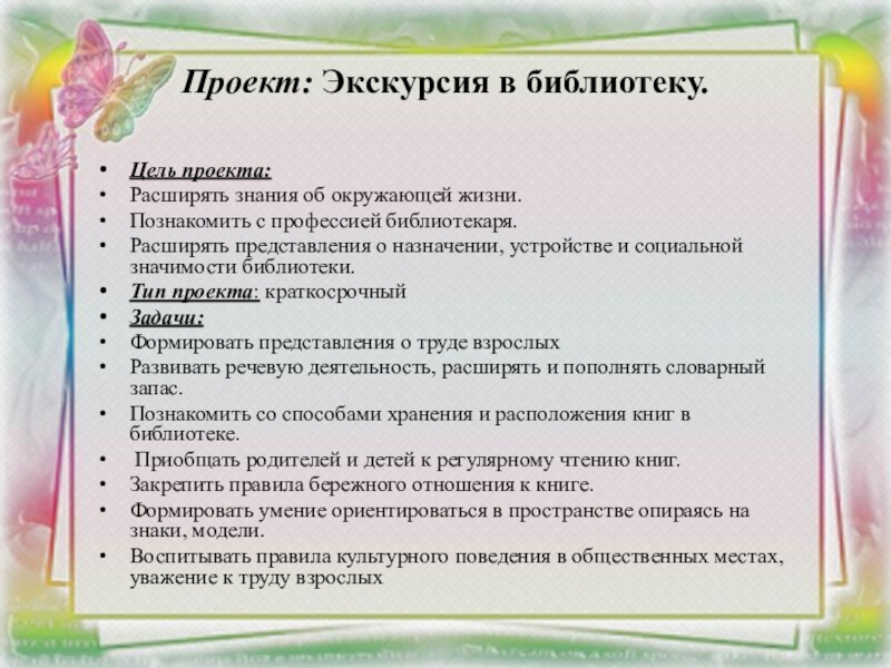 Проект по теме: «Экскурсия в библиотеку»