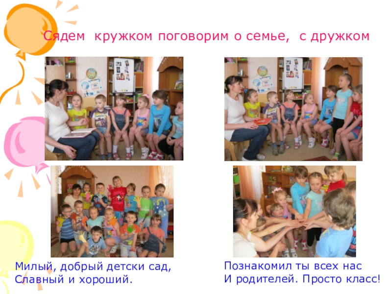 Слайд 11Сядем кружком поговорим о семье, с дружком