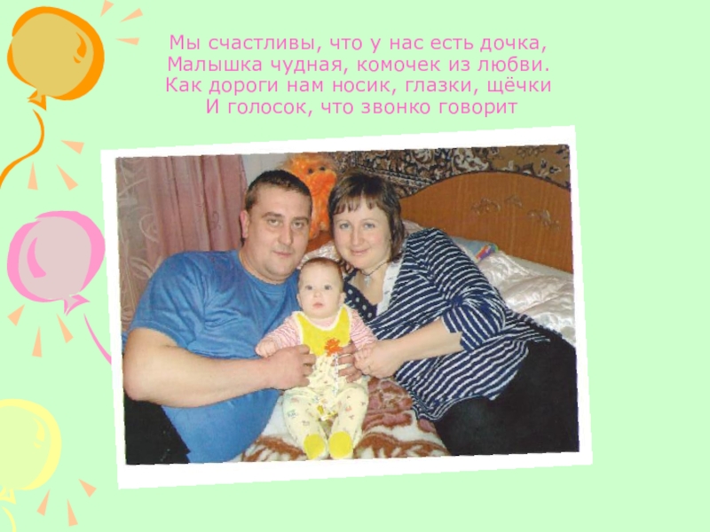 Слайд 6Мы счастливы, что у нас есть дочка,