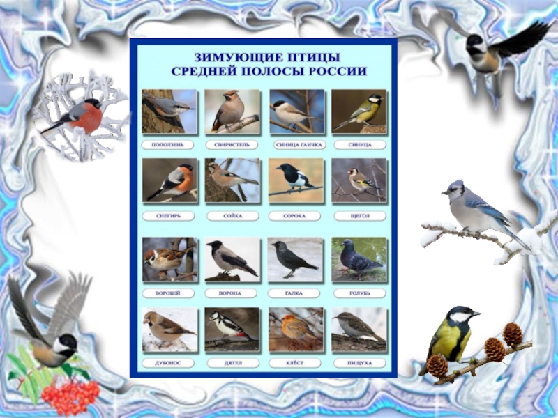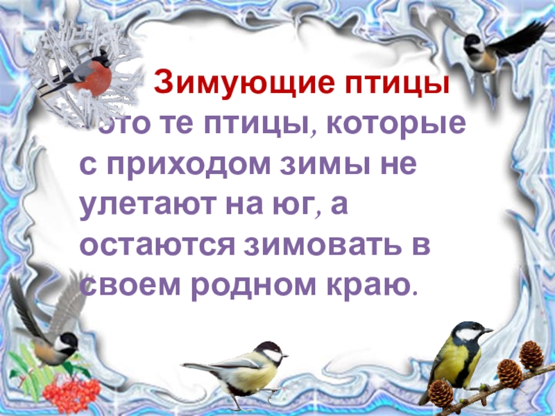 Слайд 4 Зимующие птицы