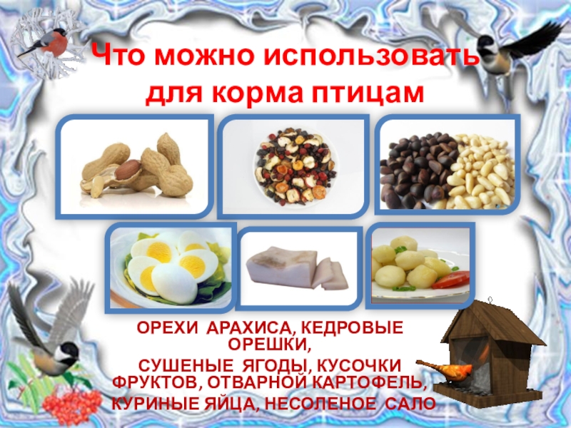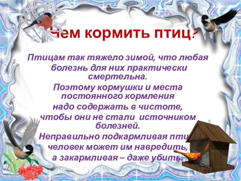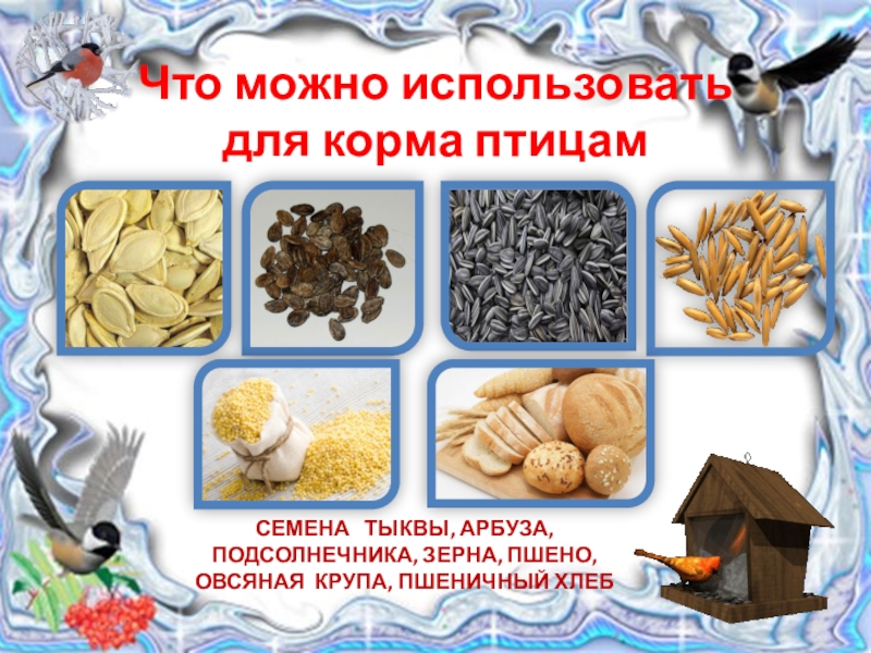 Слайд 8 Чем кормить птиц?