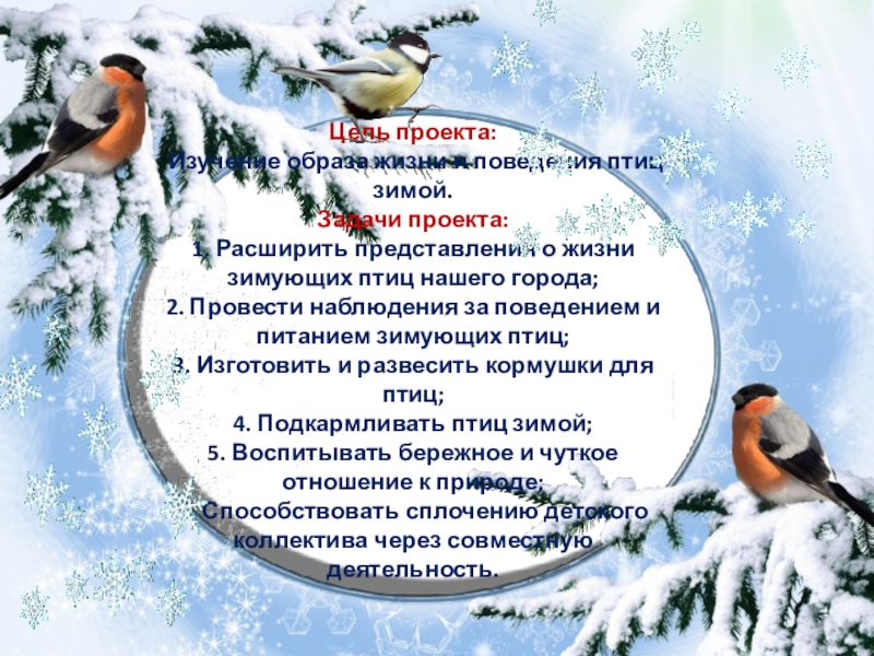 Изучение образа жизни и поведения птиц зимой.