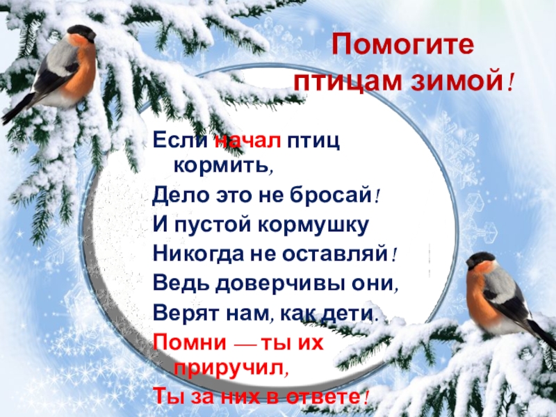 Слайд 21Помогите птицам зимой!