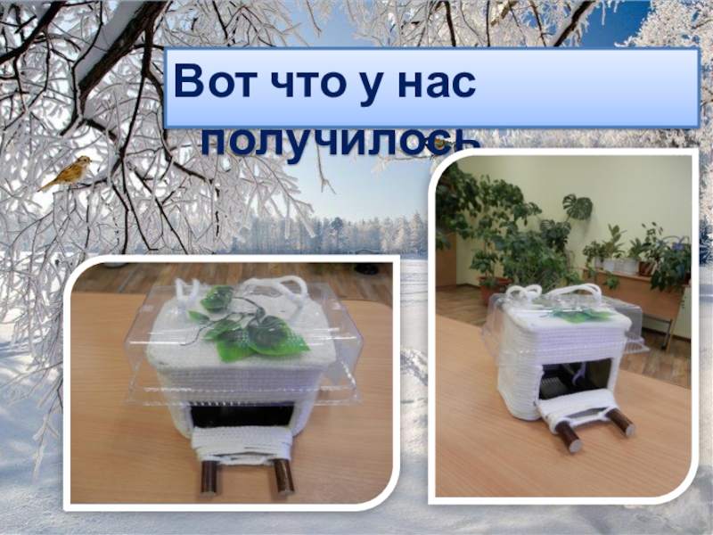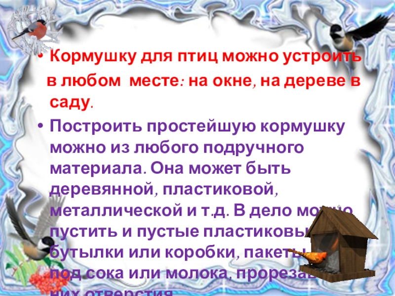 Слайд 13Кормушку для птиц можно устроить