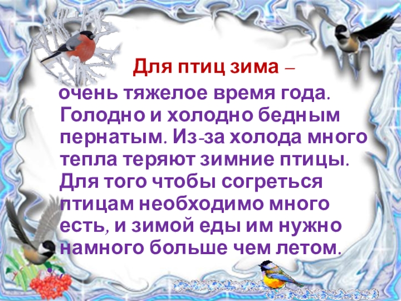 Слайд 6 Для птиц зима –