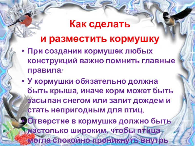 При создании кормушек любых конструкций важно помнить
