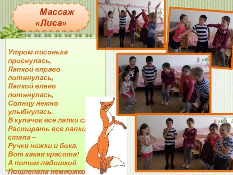 Слайд 13Массаж «Лиса»