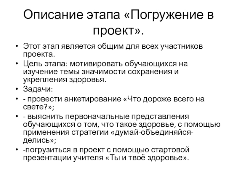 -погрузиться в проект с помощью стартовой презентации учителя «Ты и твоё здоровье».