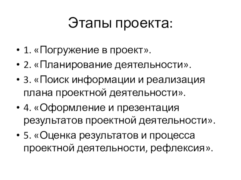 5. «Оценка результатов и процесса проектной деятельности, рефлексия».