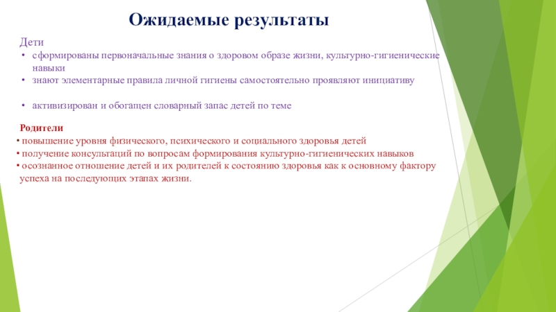 осознанное отношение детей и их родителей к состоянию здоровья как к основному фактору успеха на последующих этапах жизни.