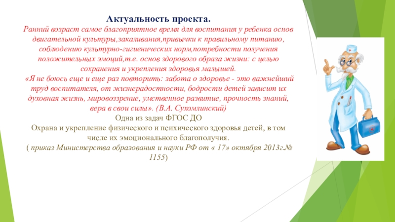 обеспечить дошкольнику возможность сохранения здоровья, сформировать у него необходимые знания, умения, навыки по здоровому образу жизни.