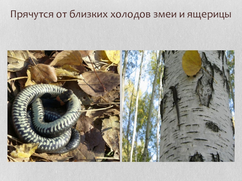 Слайд 15Прячутся от близких холодов змеи и ящерицы