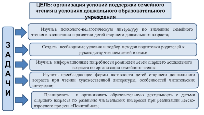 Изучить психолого-педагогическую литературу по значению семейного чтения в воспитании и развитии детей старшего дошкольного возраста;